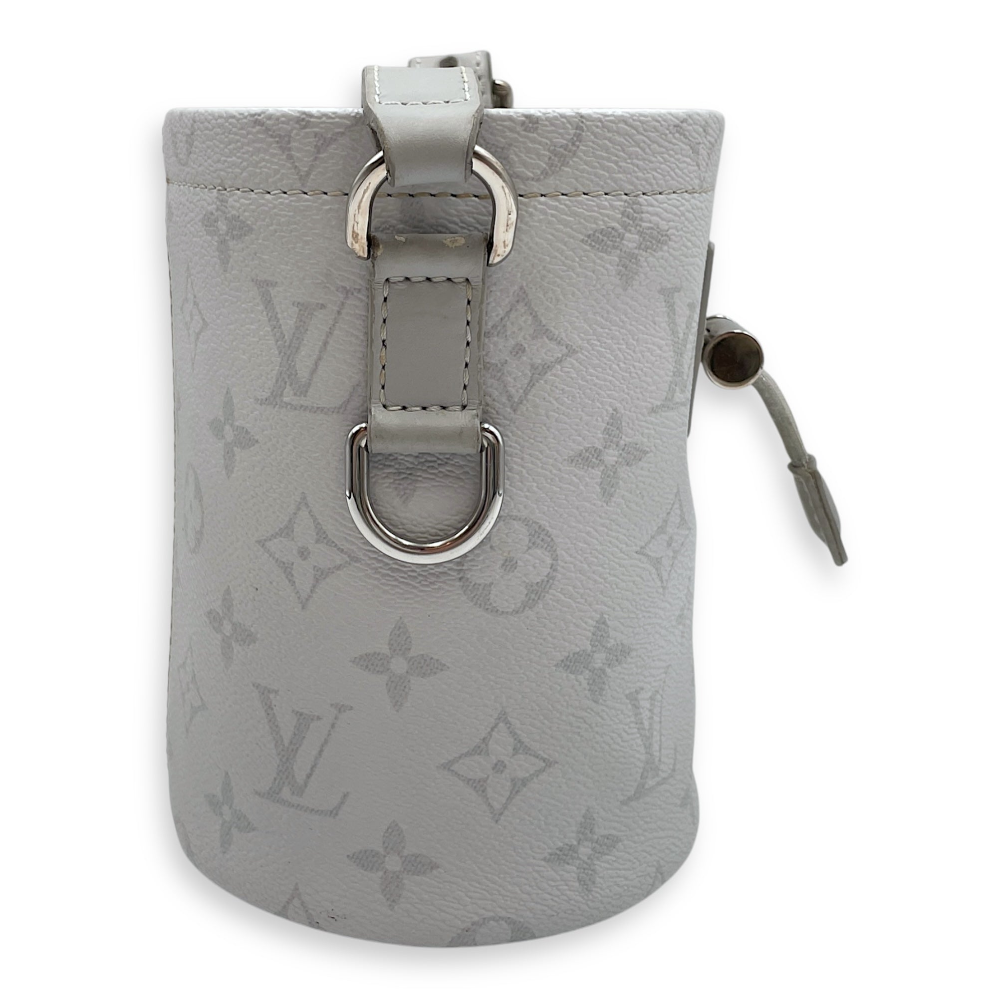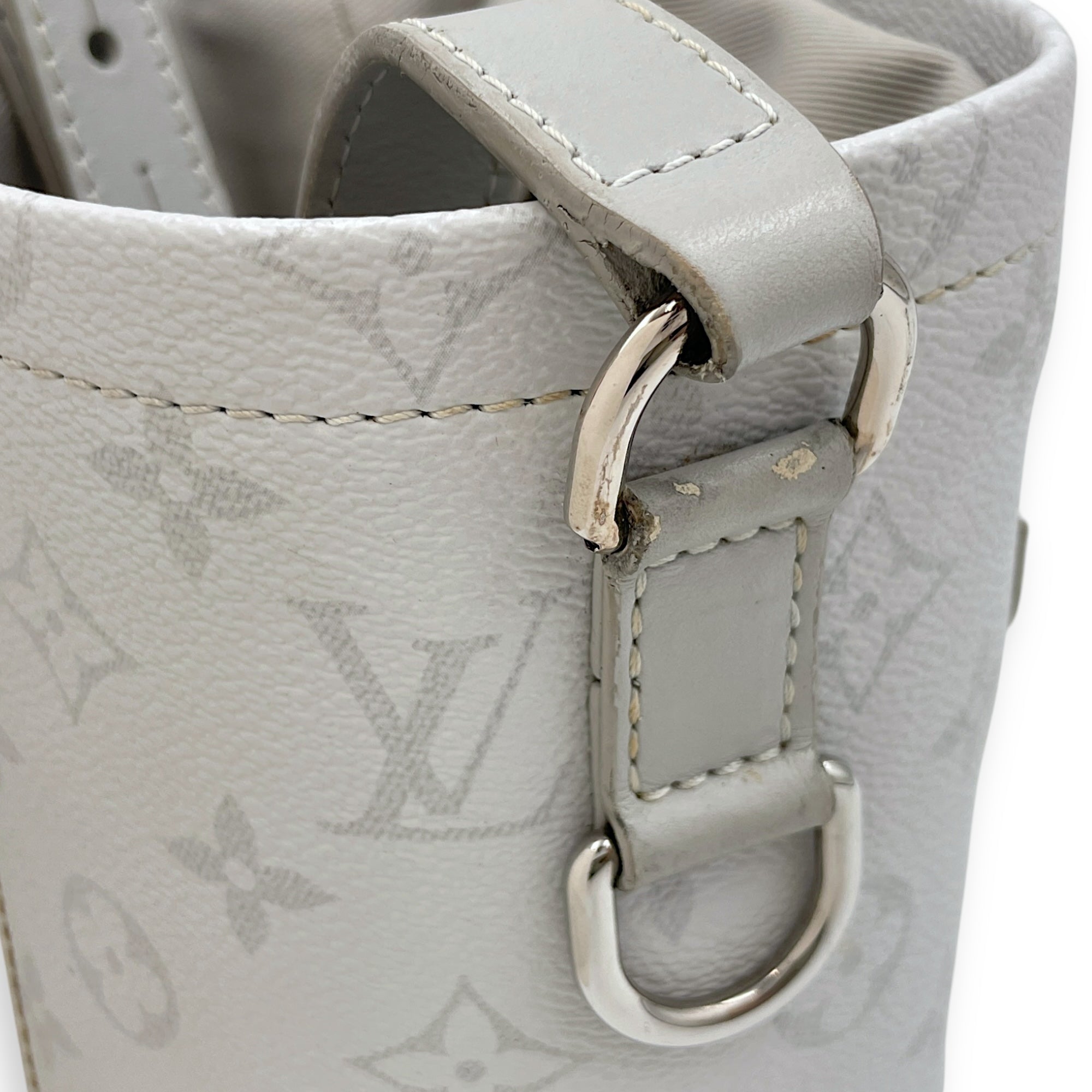 Chalk Grey Bucket Bag in Coated Canvas, Silver hardware