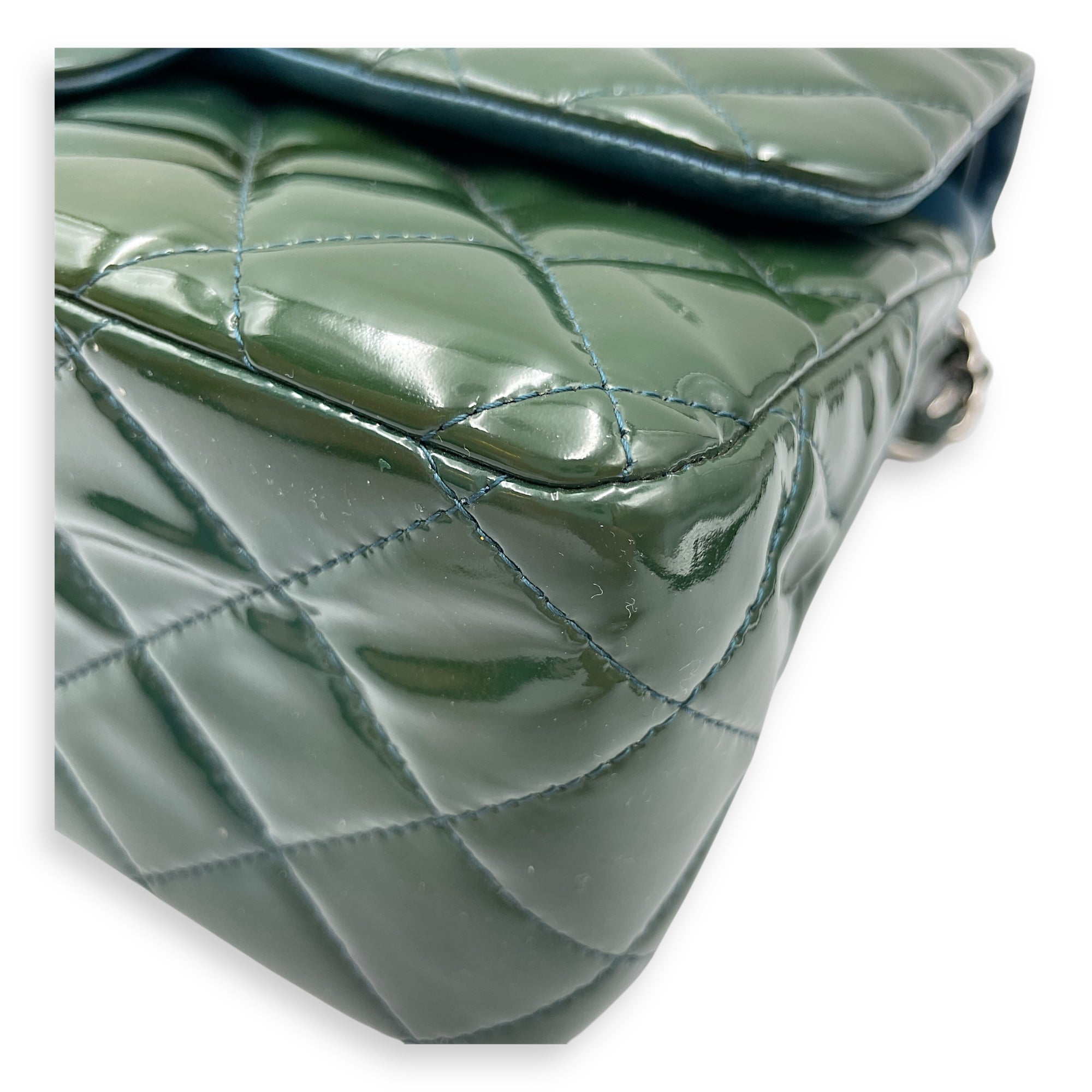 Be the first to review “Classic Double Flap Jumbo Green Shoulder Bag in Patent Leather, Silver hardware”