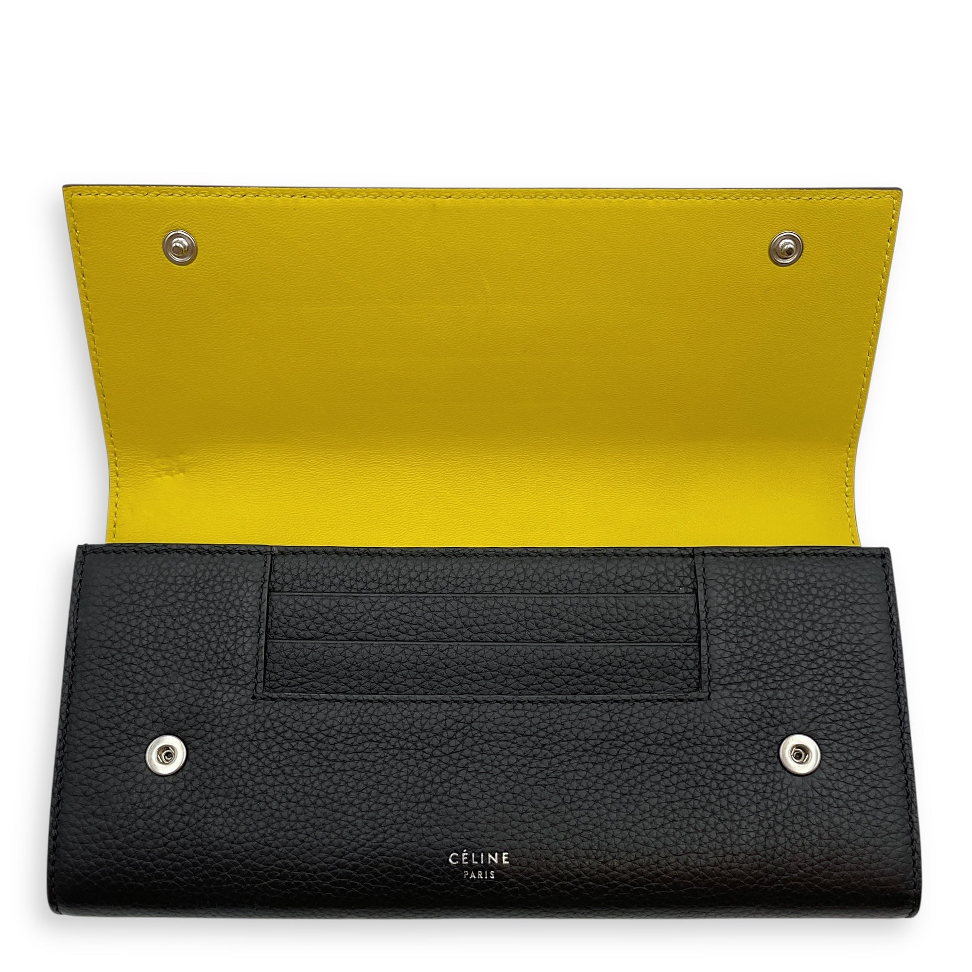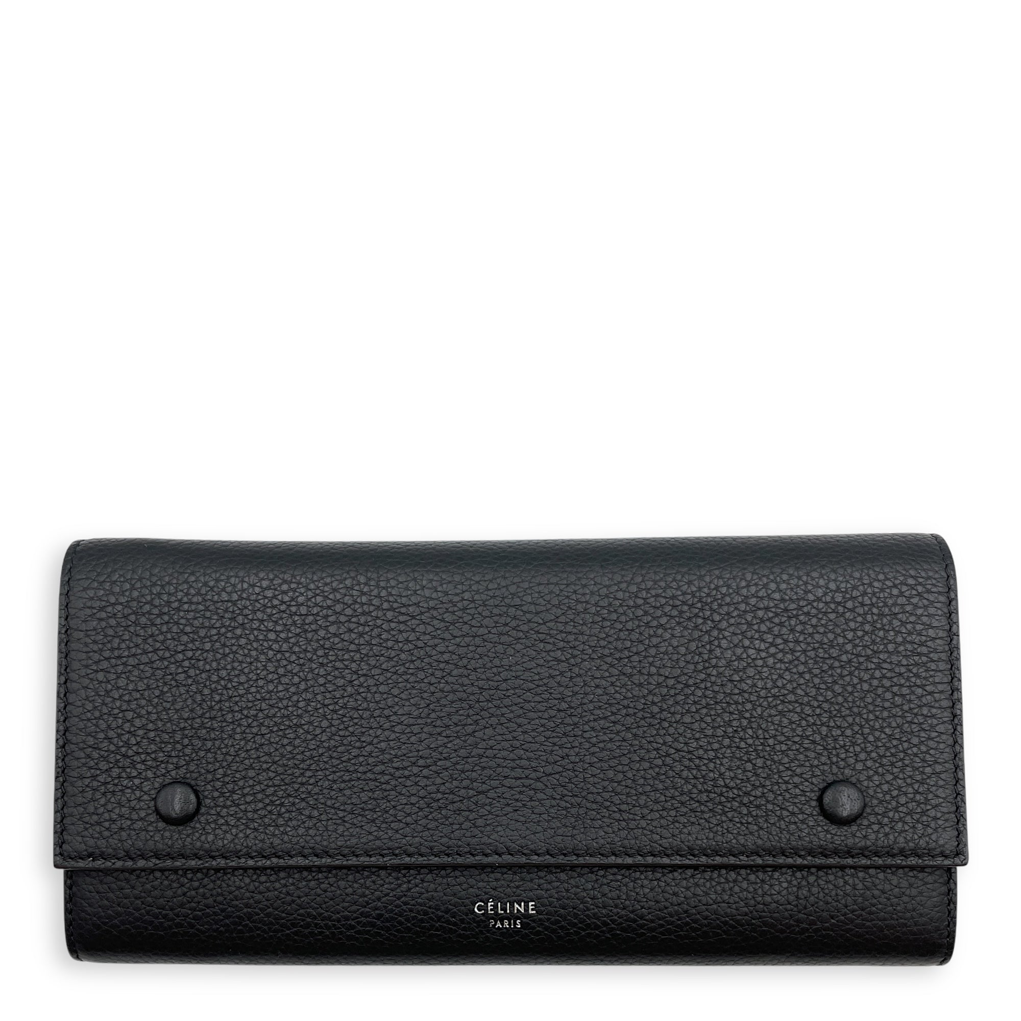 Multi Function Long Black Wallet in Calfskin, Silver hardware