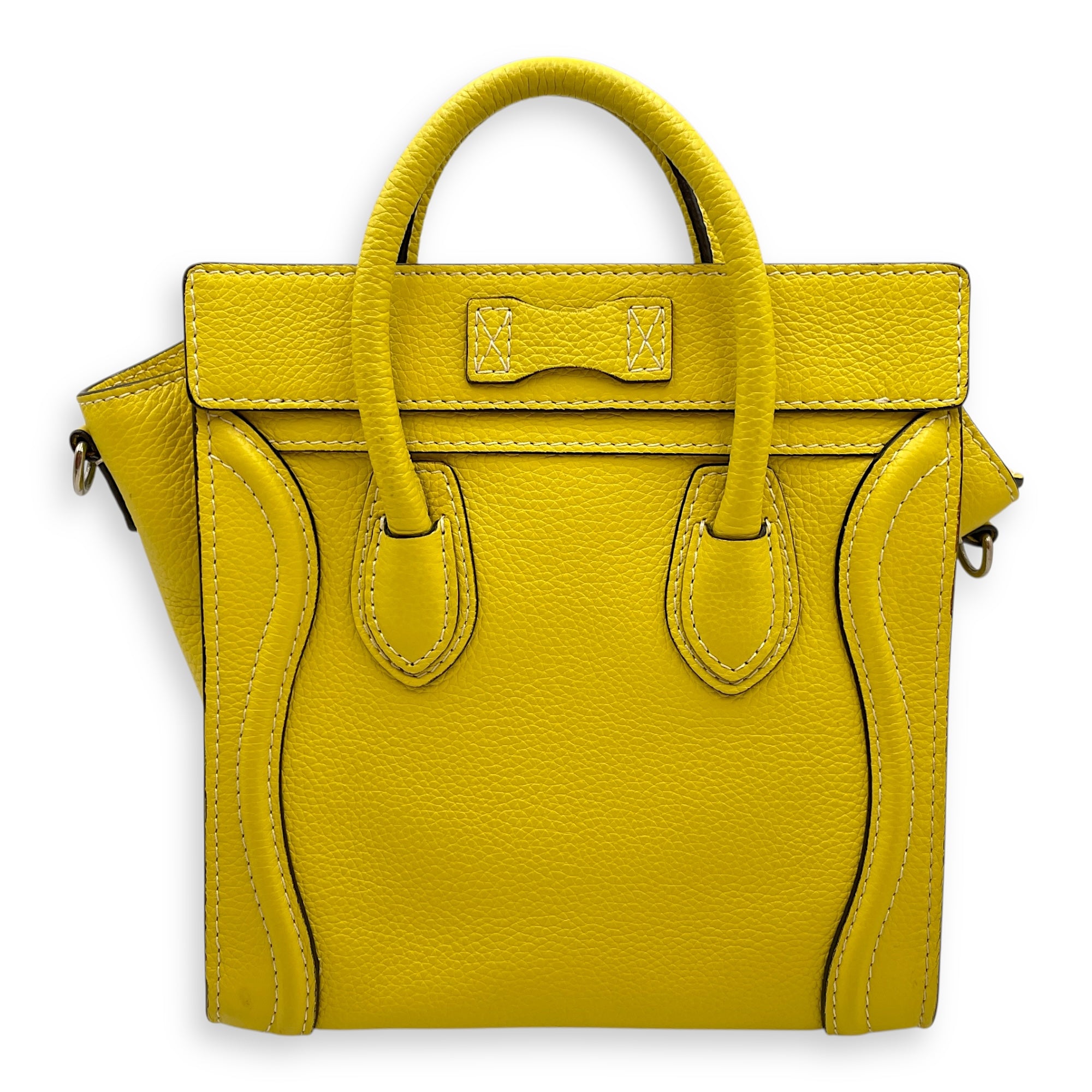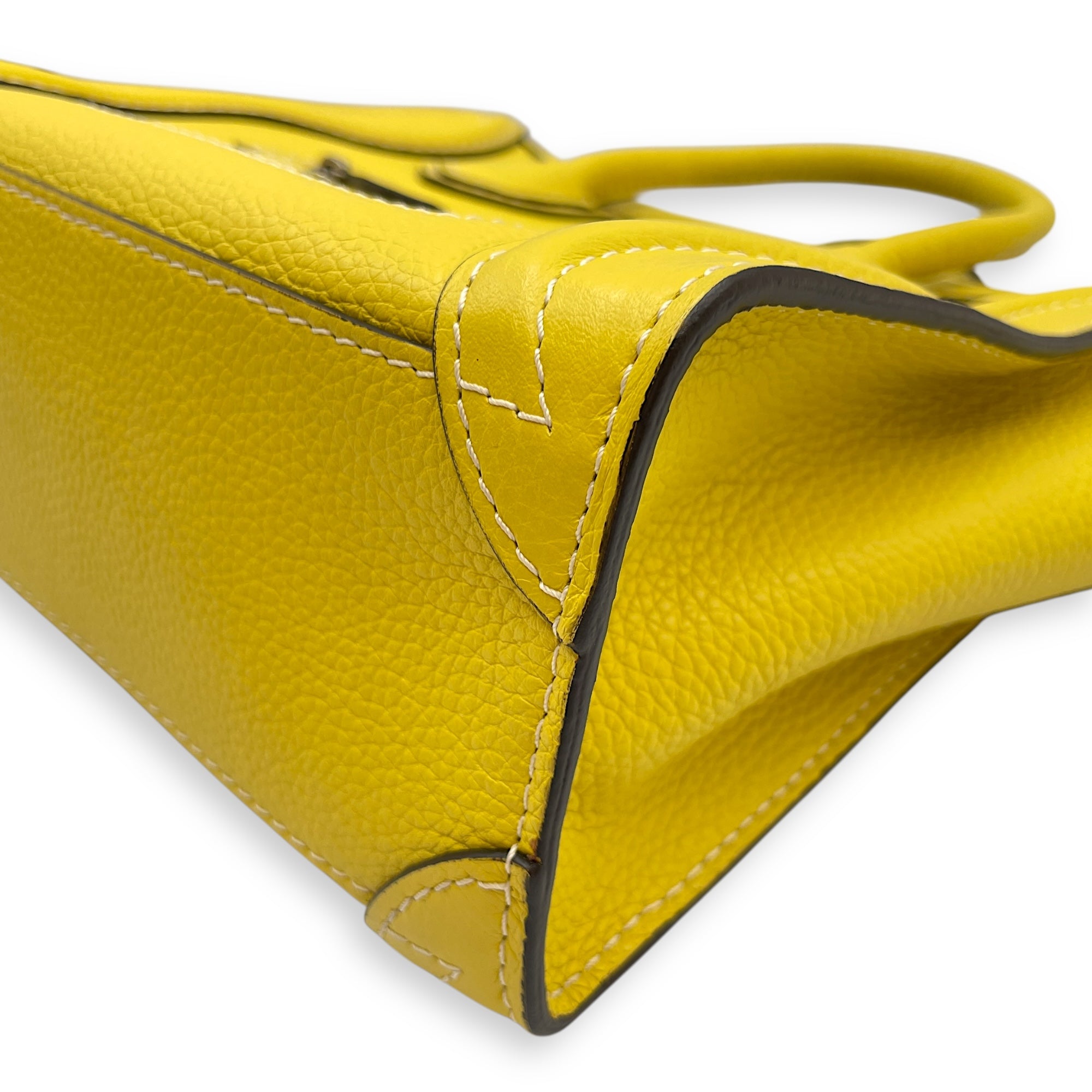 Nano Yellow Luggage in Calfskin, Silver hardware