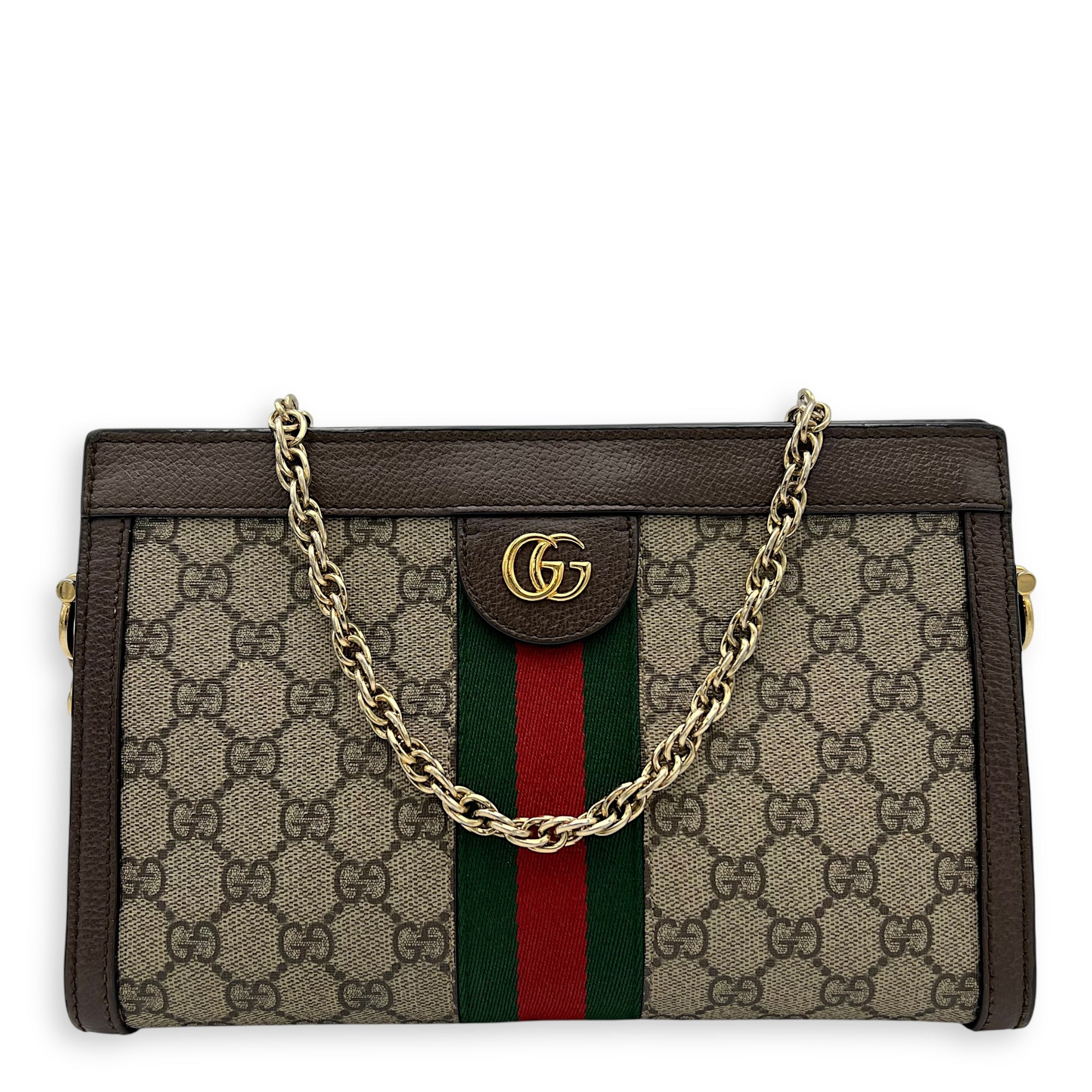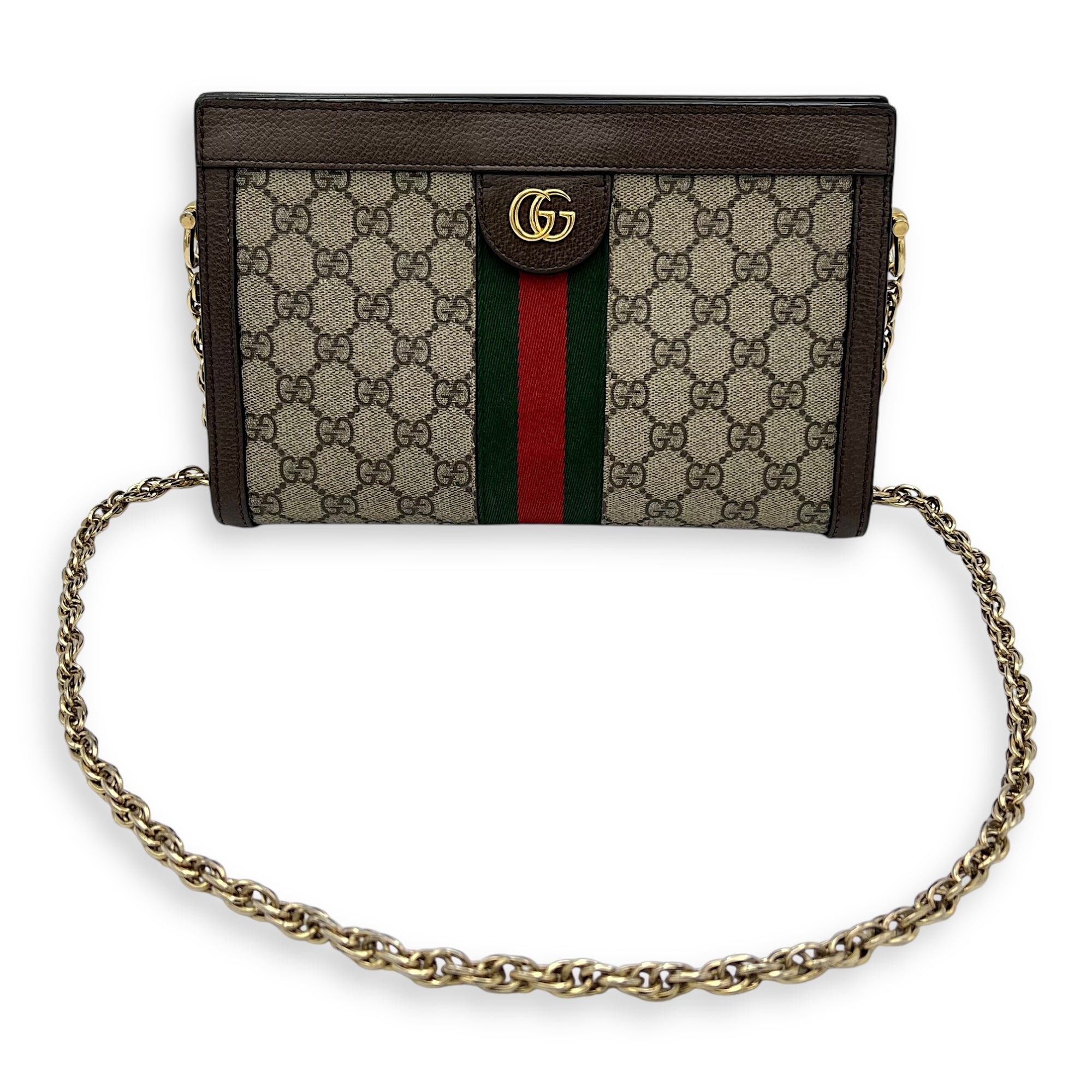 Ophidia Crossbody Bag Brown in Coated Canvas, Gold hardware